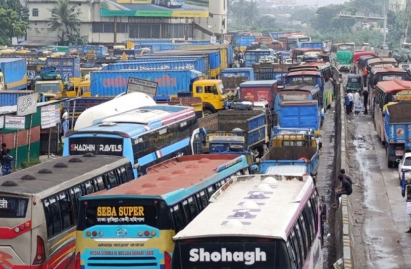 A massive 19-kilometer tailback was reported from Signboard to Meghna Toll Plaza on the Dhaka-Chattogram highway. The Dhaka-Sylhet highway also saw significant slowdowns, particularly in areas like Bhairab, Narsingdi, and Araihazar, with vehicles moving slowly or stopping intermittently.